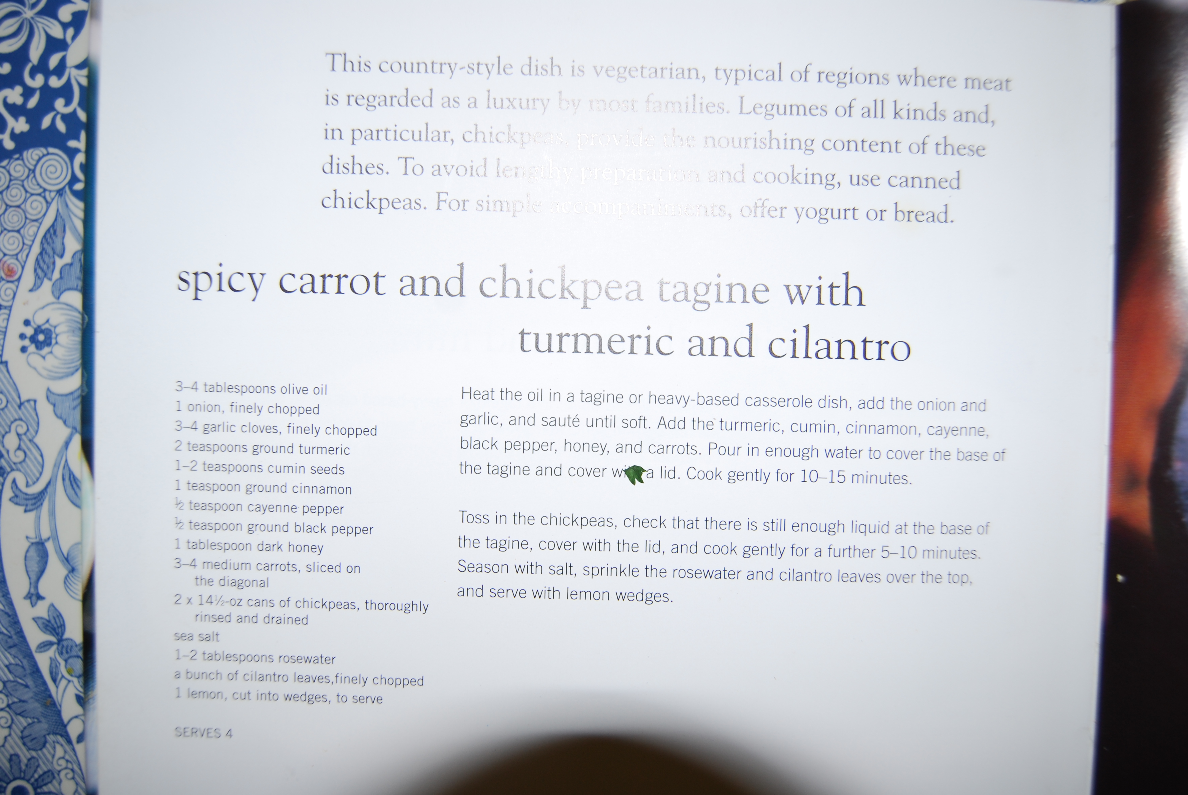 She altered a tagine carrot recipe to eliminate the chick peas and made it paleo and served the tagine carrots over the cauliflower rice.