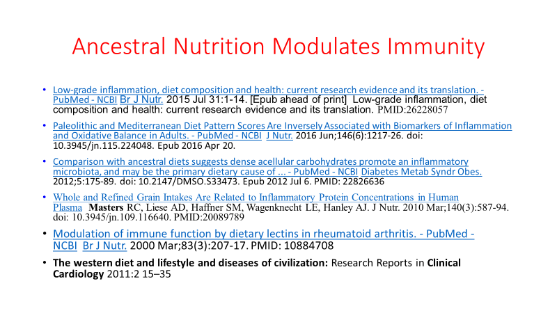And here is a slide from one of my lectures with references on how an ancestral diet modulates immunity.