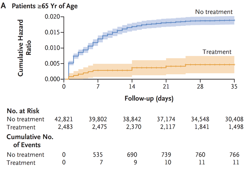 The VA study also showed a 48% reduction of death and 30% reduction in hospitalization after the acute phase (acute phase = first 30 days) as demonstrated here.