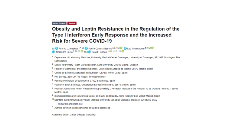 Obesity, insulin and leptin resistance, also interfere with the production and signaling of interferon. The result is that people with insulin and leptin resistance (pre-diabetes, Type 2 Diabetes as well as sarcopenia) experience a double hit. First the virus itself disrupts the immune response and superimposed upon the viral effect is the effect of insulin and leptin resistance on the immune response.