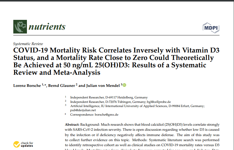 A study from Spain with very high dose Vitamin D in the form of Calcifediol showed significant benefit in hospitalized patients, suggesting that Vitamin D deficiency was prevalent in that population and that such a treatment intervention should be widely considered.