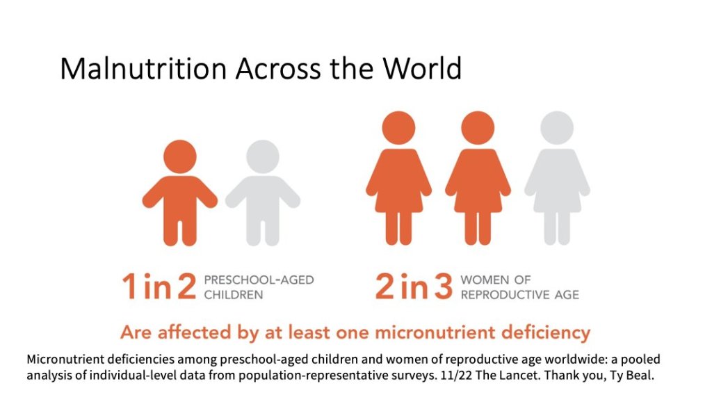 - Worldwide, 1 in 2 children and 2 in 3 women have at least one micronutrient deficiency, wreaking havoc on immune systems, hindering growth and development, and limiting human potential.